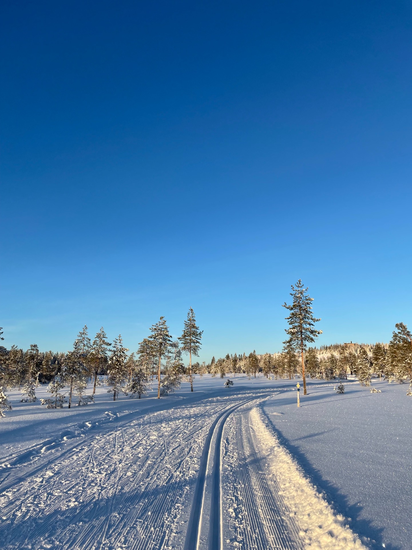 Vi tycker om att åka skidor på vintern. Både utför och på längden. Det är ju så härligt!